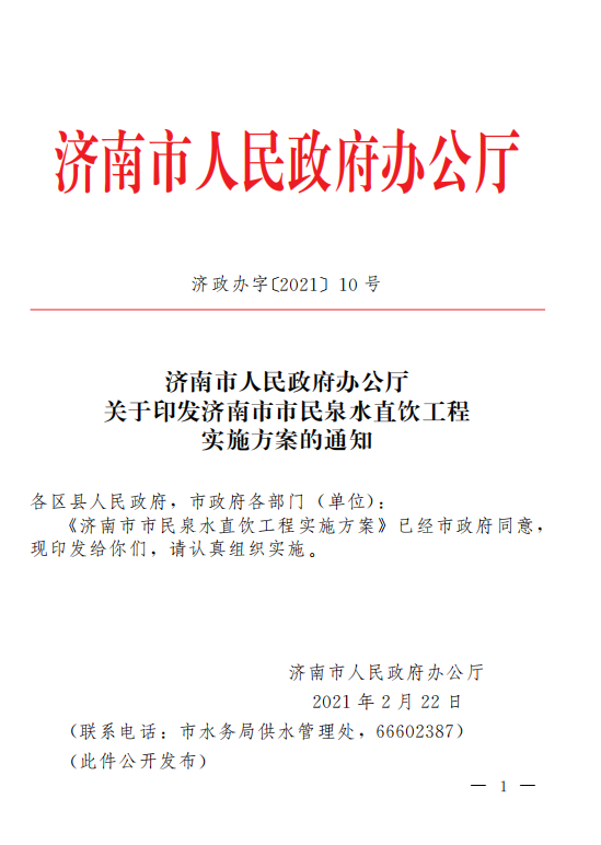 为充分利用我市优质泉水资源,更好发挥泉水的经济效益和社会效益。2021年济南市人民政府印发《济南市市民泉水直饮工程实施方案》,2022年济南市城乡水务局印发《济南市市民泉水直饮规划(2021-2025)》加快推动济南市泉水直饮工程实施,满足泉城人民喝泉水的美好夙愿。