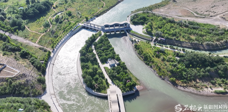 7月8日,喀什河引水枢纽俯瞰场景。自治区水利厅供图