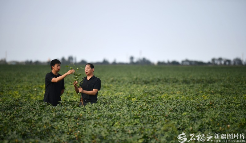 工作人员在玛纳斯县高标准农田查看棉花长势(资料图)。石榴云/新疆日报记者 邹懿摄
