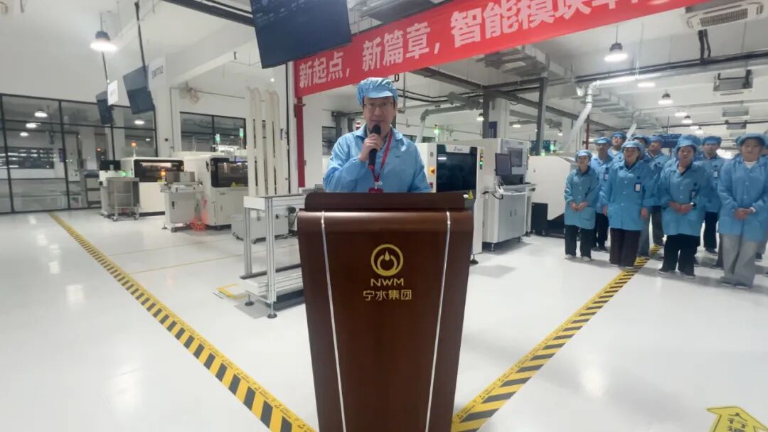 仪式开始后,智能水表制造厂厂长宓裕蛟发表致辞。他在讲话中提到,智能模块制造车间的升级改造具有里程碑意义,不仅标志着公司“智造升级”战略的落地,更是宁水集团产能突破的“新引擎”,有力支撑全球水务客户对智能水表产品“高品控、快交付”的需求。从核心电子模块到整机集成,全流程自主把控,让客户享受到更省心、更优质的产品服务,为业务部门拓展市场、承接订单注入强劲信心。