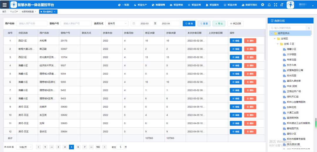 系统内置多种算法,针对不同情况,选取最优算法对营收用水量进行算法修正,最大程度减少计量误差。同时系统支持对因数据传输异常等问题造成供水量错误的数据,进行水量追加追减。
